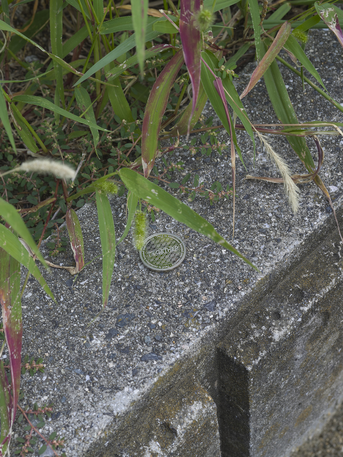 ライアン・ガンダーが仕掛けたのは、会期中、全3種、2万枚のコインが会場やその周辺のどこかに置かれ、見つけた人は持って帰れる《The Find》。コインには表裏で「ACTION(行動する)」「PAUSE(止まる)」などの言葉が刻印されており、コイン占いを楽しめる。探してみたところ、道沿いのベンチの上や公園の植込みの縁で見つけたが、実際どこに置かれているかは分からない。「もしかしたらあそこにあるかも」と探りながら歩く「コイン探しモード」の街はまるで迷宮のようだった。
