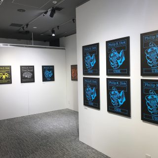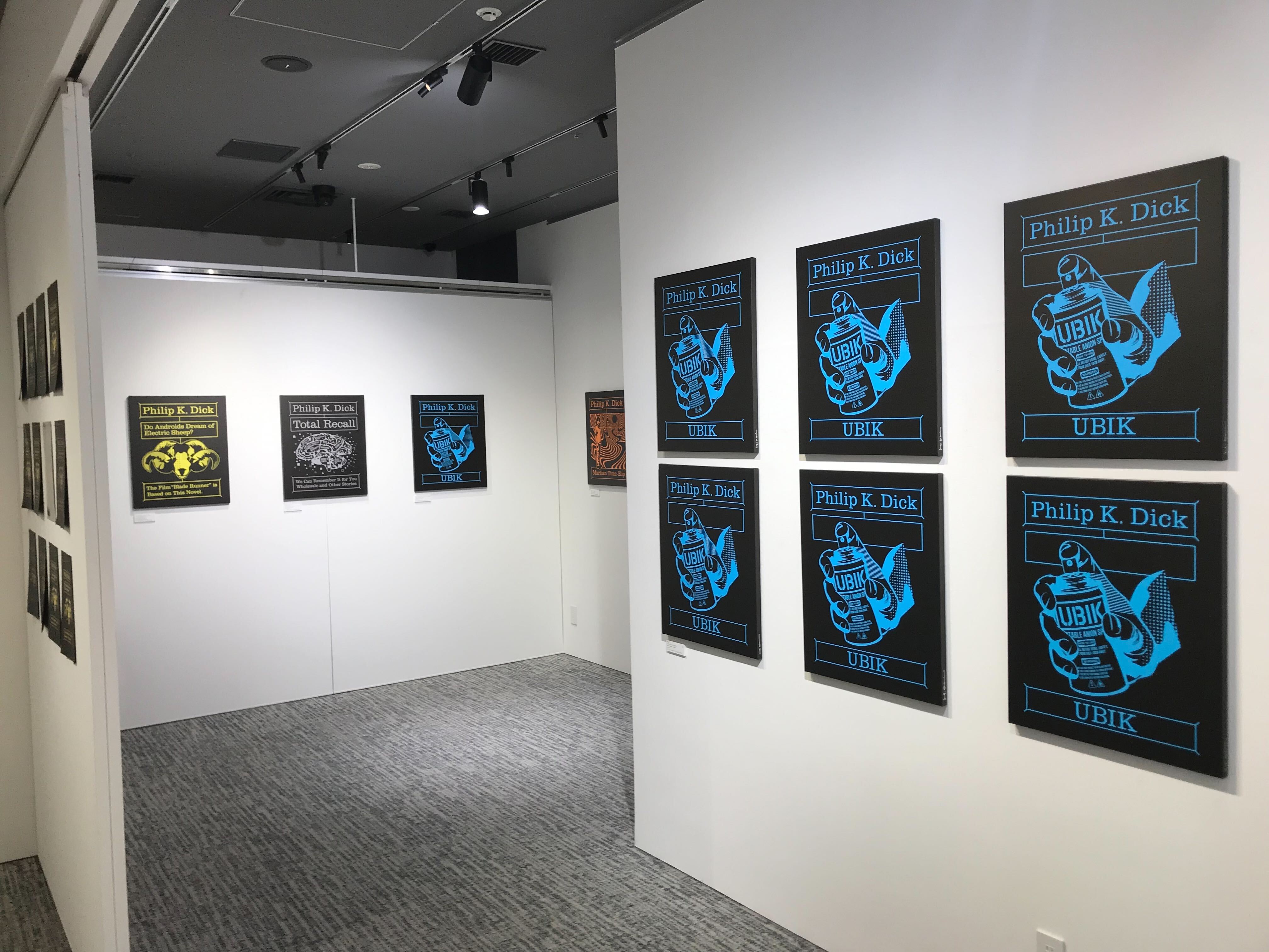 本展では、早川書房で出版されているディック小説のカバーアートが並ぶ。デザインしたのはグラフィックデザイナーの土井宏明。黒バックにカラフルなドローイングが映えるグラフィックは、ファンにとっては一目でそれとわかるアイコニックな表現であり、ファンでない人にとっても印象に残るデザインだ。今回特に注目されるのは、F12号キャンバス(約60.6 × 50.0 cm、木製フレーム)にUVプリントされた作品。「アンドロイドは電気羊の夢を見るか?」「ユービック」「トータル・リコール」「スキャナー・ダークリー」「高い城の男(新デザイン)」の5点が展示され、受注生産形式で販売される。また10月3日(金)17:00〜19:00には土井が在廊し、作品やグッズに込めた意図、デザインの背景について直接語るトークが行われる予定だ。ファンやデザイン愛好者にとっては、制作現場の裏話を聞ける貴重な機会となるだろう。