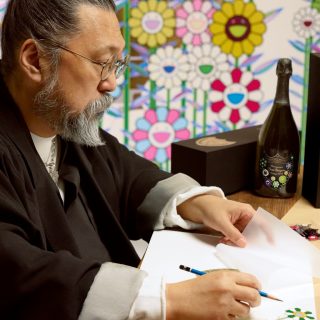 1743年創業の老舗シャンパーニュ・ブランド、ドン・ペリニヨンは10月1日、村上隆を起用した2種類の限定商品を発売した。村上の代名詞とも言える「お花」に彩られたデザインは、「100年、200年先にも意味を持つものでありたい」という願いのもと制作されたという。