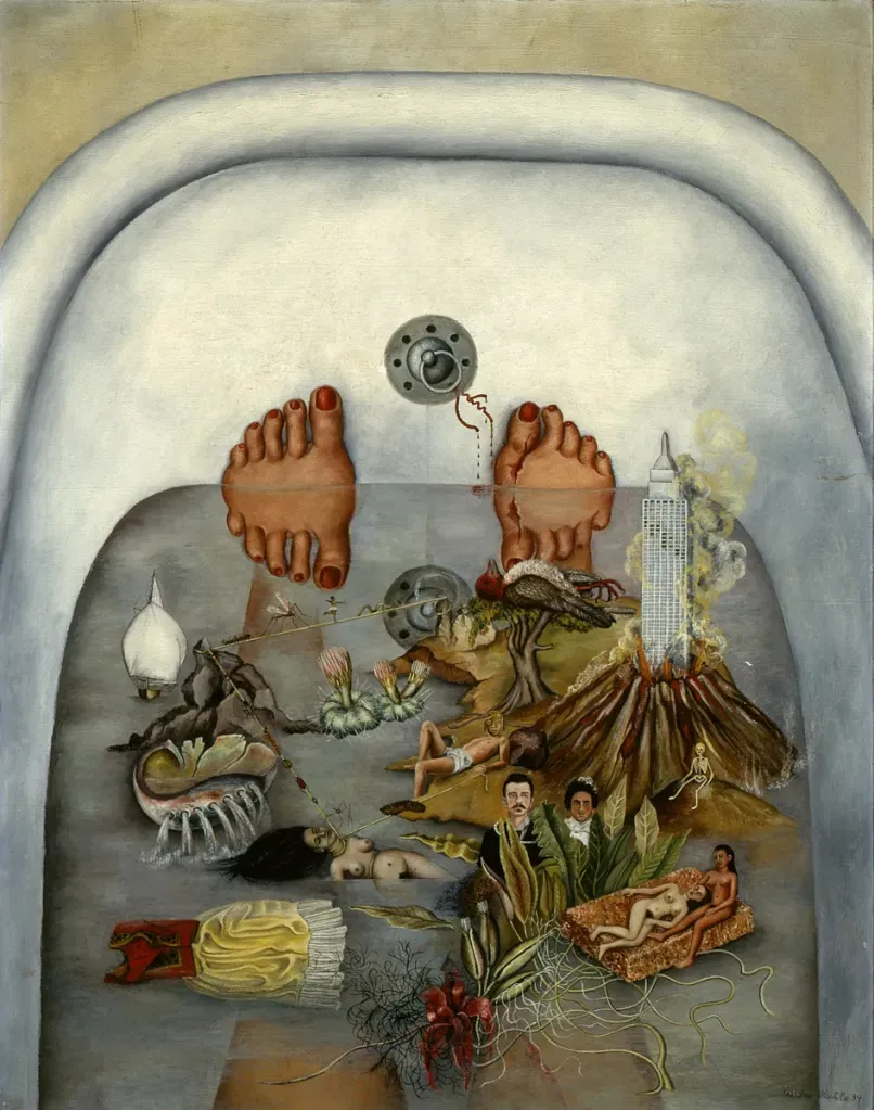 フリーダ・カーロ《Lo que el agua me dio》(1938) Photo: Private Collection. Digital image: Schalkwijk/Art Resource, New York. Artowrk copyright © 2024 Banco de México Diego Rivera Frida Kahlo Museums Trust, Mexico, D.F./Artists Rights Society (ARS), New York.