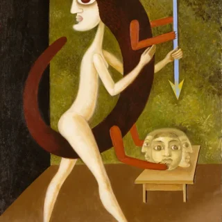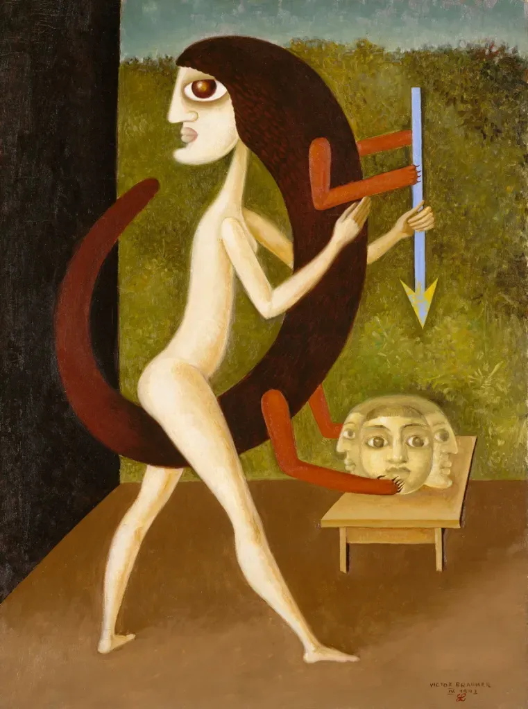 インジ・エフラトゥーン《La Jeune Fille et le montstre》(1942) Photo: Collection of Mathaf: Arab Museum of Modern Art, Doha. Digital image courtesy Mathaf: Arab Museum of Modern Art, Doha. Artwork copyright © Estate of Ramses Younan.