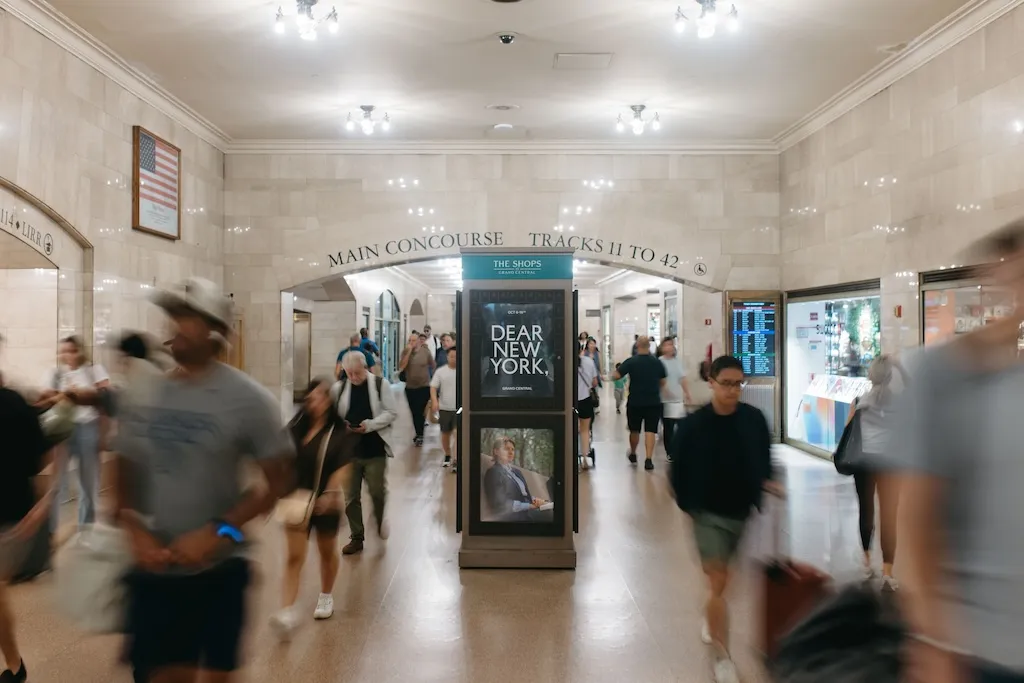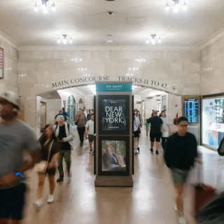 プロジェクトの公開を3日後に控えたある日、スタントンは筆者をグランド・セントラル駅のメイン・コンコースへ案内してくれた。それ自体がひとつの体験だった。彼の口から《Dear New York》の構想を聞くうちに、この作品が日常の通勤をほんの一瞬でも変える可能性を直感的に理解できた。