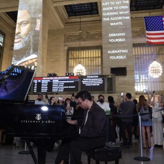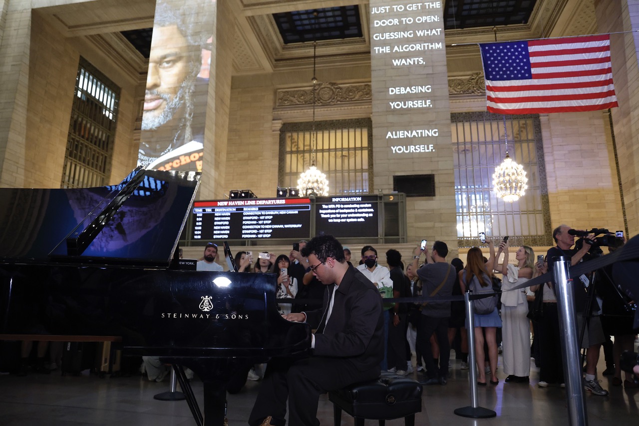 インスタレーションの中心となるのは、メイン・コンコースだ。約15メートルの巨大なプロジェクションが通勤客や来訪者を取り囲み、ニューヨークの物語を描く壮大なパノラマを出現させる。ここでは、ジュリアード音楽院と協働して制作された100時間以上の音楽が流れ、学生や卒業生、教授陣によるクラシック、ジャズ、ヒストリカル・プログラムなどのライブ演奏も行われる。ターミナル中央に設置されたスタインウェイ社提供のピアノは、会期中いつでも利用可能だ。