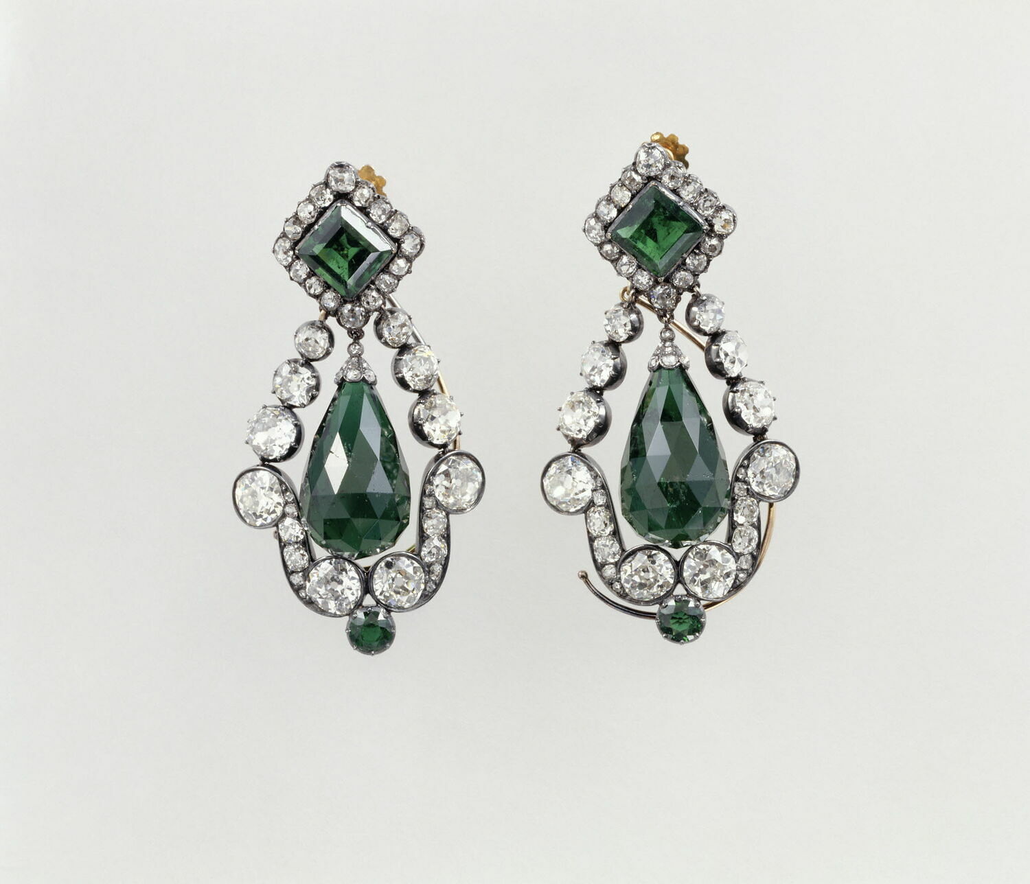 マリー=ルイーズ皇后のパリュールのエメラルドのイヤリング。Photo: Courtesy of Louvre Museum