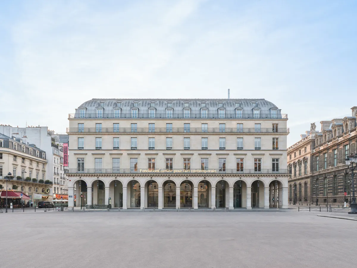 シャルル・ペルシエとピエール・フランソワ・レオナール・フォンテーヌによる設計で、リヴォリ通りに面したアーケードが特徴的な建物の外観は、19世紀に建設された頃と変わらず歴史的建造物が立ち並ぶ周囲との調和を保っている。それに対して内部は、モンパルナスのラスパイユ大通りにあったガラスと鋼鉄の旧拠点を手がけたフランス人建築家、ジャン・ヌーヴェルによって完全に再構築された。カルティエ財団の戦略・国際プロジェクト部長で、リニューアル後初の展覧会の共同キュレーターを務めるベアトリス・グルニエによると、「周辺では唯一、1階全体が一貫したデザインになっており、150メートルに及ぶファサードのどの入口からも出入りすることができる」という。