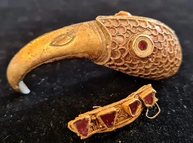 畑から1400年前の純金製カラスの頭部が出土! 新人金属探知機愛好家らの大手柄