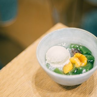 平安神宮もある岡崎公園内に位置する京都国立近代美術館は、京都を含む西日本の美術や工芸にフォーカスした多彩なジャンルの展覧会を開催している。館内にあるcafe de 505は岡崎疏水沿いにあり、春は疏水沿いの桜並木を楽しめるお花見スポットでもある。定番メニューの「白川」はモンドセレクションを受賞した十勝あずきを使用したつぶあん、上品な甘さとバニラアイス、抹茶ゼリーのつるっとした喉ごしが心地よい。フルーツサンドやミックスサンド、自家製スコーンなどの軽食も充実している。天気がいい日には疏水に面したテラス席で、スイーツと共に開放的な気分で展示の余韻にひたるのもおすすめだ。