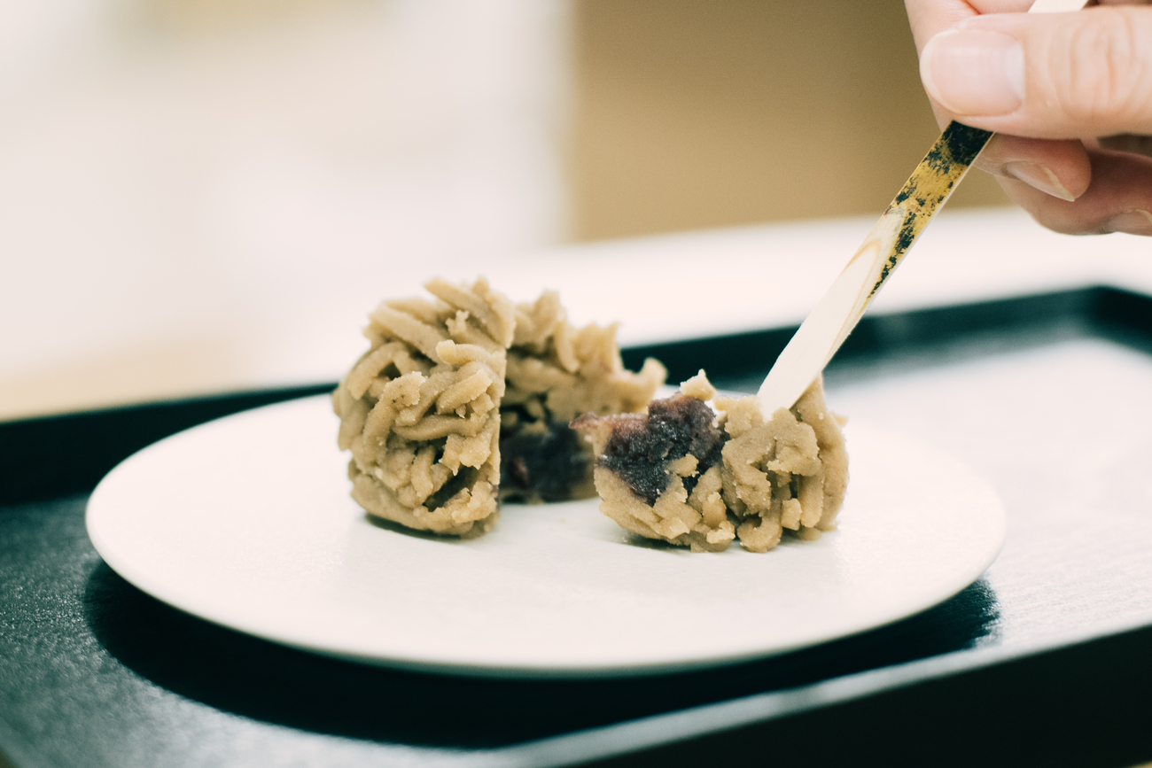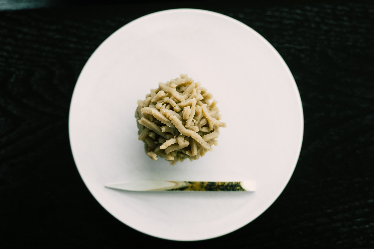 素朴ながら繊細で味わい深い「ほうじ茶きんとん」【京都市京セラ美術館】