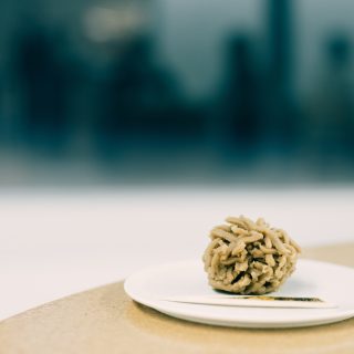 同じく岡崎公園内にある京都市京セラ美術館にあるカフェ、ENFUSEでは、12月7日まで開催の特別展「民藝誕生100年—京都が紡いだ日常の美」とコラボレーションした「京菓子司 金谷正廣」特製の「ほうじ茶きんとん」を提供。外には一保堂茶舖のほうじ茶をぜいたくに練り込んだ白あんを、中には自家製のつぶあんがあしらわれ、多層かつ繊細な甘さが口のなかに広がる。童仙房茶舗のほうじ玄米茶やかぶせ茶とのペアリングもおすすめだ。カフェでは店内での飲食だけでなく、お弁当などのピクニックプランも提供している(3日前までに要予約、11月30日まで)。