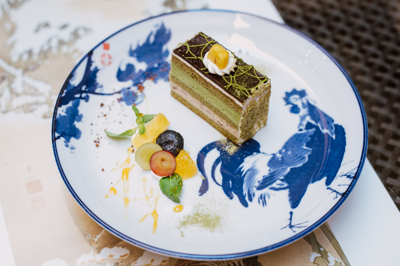 特製プレート上に広がる若冲とケーキの調和【細見美術館】