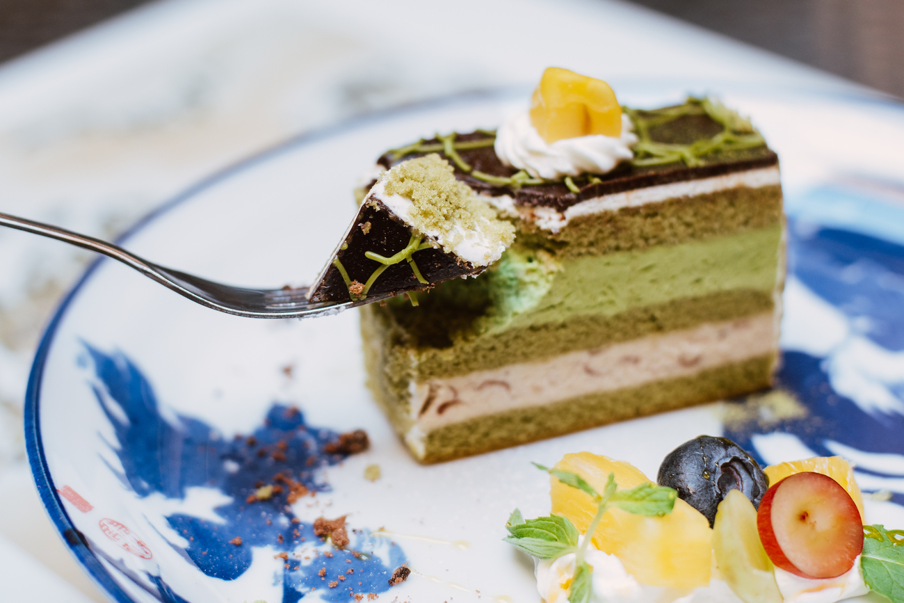 日本美術を中心に多様な企画展を開催する細見美術館は、江戸中期の画家である伊藤若冲の作品を19件所蔵している。この縁から今年3月、併設カフェを「JAKUCHU CAFÉ」としてリニューアルオープン。「若冲デザート」は、同館所蔵の若冲作品のモチーフが描かれた特製のプレートで、宇治抹茶ショコラケーキが供される。セットを注文すると、ドリンクに加え若冲作品が描かれたオリジナルポストカードが付いてくるのも嬉しい。店内には同館所蔵の若冲作品の高精細複製画が掛軸となり展示され、スイーツを楽しみながらゆっくりと若冲の世界観に浸ることができるのもポイントだ。