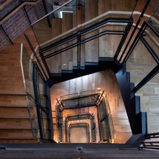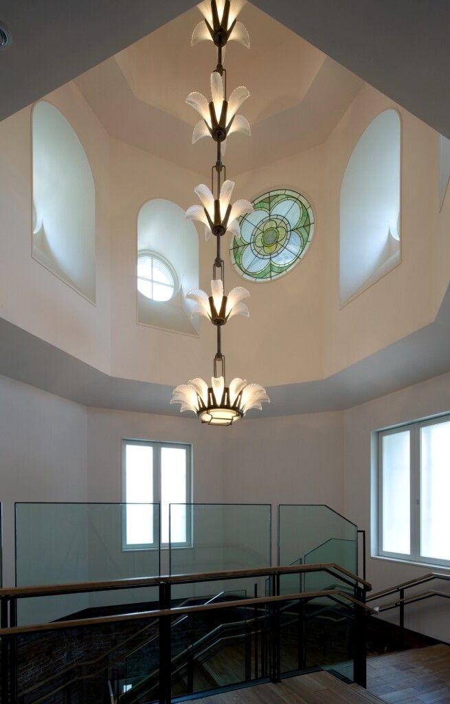 現在は1階がエントランス、2階と3階が展示室という構成で、1階と2階では可能な限り創建当時の構造を露わにしている。そこで目にすることができるのが構造レンガや鉄骨で、創建時には構造レンガが約833万個(外壁用の化粧レンガは約93万個)、鉄の構造材が約2870万トン用いられた。レンガ壁の中から、展示室の開口部などに用いられた鉄骨を探してみるのも楽しいだろう。また、駅舎の北端には八角形の塔が2本あり、1本は3階と2階の展示室の一部、もう1つは1階から3階までを結ぶ螺旋階段になっているが、ここでは3階と2階までの壁の素材の違いから創建時と復原された部分の境目がはっきり分かる。その螺旋階段に彩りを添えているのは、1988年の開館時から使い続けているシャンデリアとステンドグラスだ。