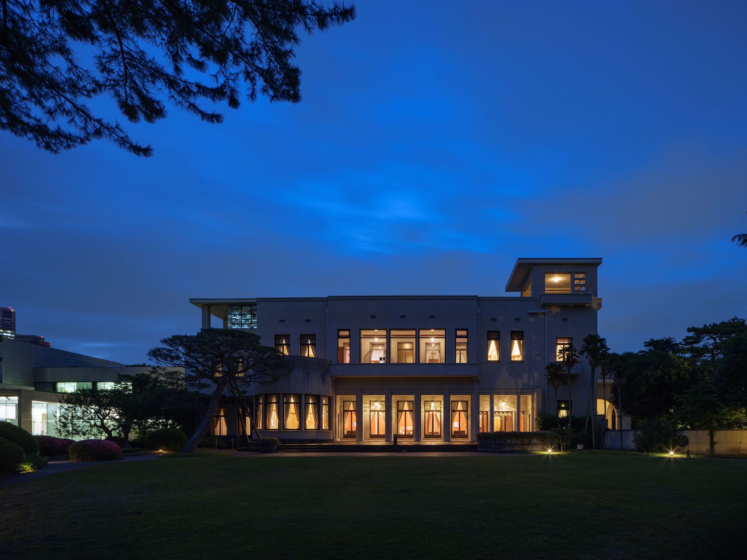 戦後、幸いにもGHQの接収を免れた旧朝香宮邸は、創建当時の面影を残したまま外務大臣、内閣総理大臣を歴任した吉田茂が公邸として使用。その後、1950年に西武鉄道に売却され、55年からは国の迎賓館として、のちに白金プリンス迎賓館として催事や結婚式、宴会などに利用されていた。そして、1981年の東京都への譲渡を経て、83年に東京都庭園美術館として開館。2011年の改修と新館の改築後、14年にリニューアルオープンし、その翌年に本館と茶室、正門、倉庫、自動車庫が国の重要文化財の指定を受けた。また、庭園美術館の名の由来になった広大な庭園には、芝庭、日本庭園、西洋庭園の3つのエリアがあり、四季折々の景観を楽しめる。正門から美術館の入り口まで、森の奥に入っていくようなアプローチは、豊かな緑に囲まれた美術館ならではの非日常的な体験だ。さらに、朝香宮鳩彦殿下が自ら「光華」と命名した日本庭園の茶室で、特別公開やさまざまな行事が実施されているのも見逃せない。