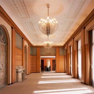 歴史的建築を活用した美術館として、多くの人がまず思い浮かべるのは東京都庭園美術館(旧朝香宮邸)ではないだろうか。江戸時代に高松藩松平家の下屋敷があった白金台の御料地に、皇族である朝香宮鳩彦殿下が自邸を建設したのは1933年(昭和8年)。1925年のパリ万博開催時にフランスに滞在していた朝香宮夫妻が、当時全盛期だったアール・デコの様式美に魅了されたことがきっかけとなり、フランス人装飾芸術家のアンリ・ラパンやガラス工芸で有名なルネ・ラリックに主要な部屋の内装デザインが依頼された。今に残る香水塔や家具類など、直線的で幾何学的なモチーフを特徴とするアール・デコの粋をふんだんに取り入れた空間は、それ自体かげがえのない芸術品と言える。また、過度な装飾のないシンプルなモダニズム建築の本館は、当時の宮内省内匠寮(たくみりょう)が設計を担当している。