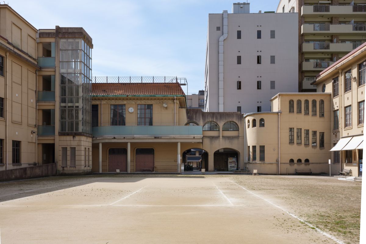 京都市の中心部、四条烏丸の交差点からほど近い京都芸術センターは、かつての小学校の校舎にある。それは1869年(明治2年)に開校した明倫小学校で、1931年(昭和6年)に現在残る鉄筋コンクリート造の建物に改築された。当時流行していたアール・デコやスパニッシュ様式を取り入れたデザインで、赤みを帯びたクリーム色の外壁やオレンジ色のスぺイン風屋根瓦が、異国風ながら温かみのある雰囲気を醸し出している。また、正門から正面に見える建物の屋根部分は、祇園祭の山鉾を模していると言われる。これは、明倫小学校の学区内には山鉾巡行を担う「山鉾町」が多いからだという。