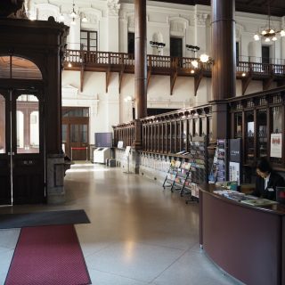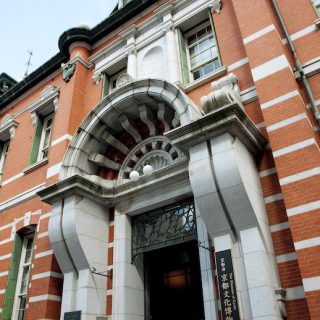 スタイリッシュな雑貨店やセレクトショップ、飲食店が並ぶ京都の三条通で、寺町通から烏丸通の間にはいくつものレトロ建築が残っている。中でも、ひときわ堂々とした外観を誇るのが京都文化博物館の別館だ。近代化に邁進した明治時代らしいレンガ造りの建物は、日本近代建築の父と呼ばれる辰野金吾と、その弟子である長野宇平治の設計で1906年に竣工した。赤いレンガに白い花崗岩のラインが鮮やかなコントラストを見せる特徴的なデザインは、「辰野式」と呼ばれている。この新築の建物に移転してきたのが日本銀行京都出張所(のちの京都支店)で、1965年に再移転するまで約60年にわたり利用されていた。その後、財団法人古代學協會が所有する平安博物館として運営され、1969年には国の重要文化財の指定を受けている。1986年に京都府に寄贈されて修理・復元が行われ、88年に京都文化博物館の別館として公開された。