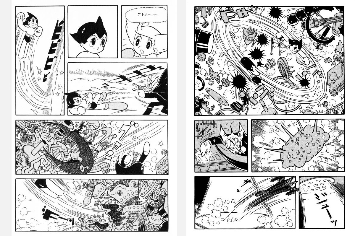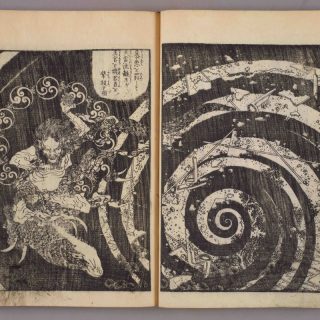 マンガの起源を探るセクションには、18〜19世紀の葛飾北斎や喜多川歌麿、河鍋暁斎らの浮世絵や肉筆画のほか、絵巻物、絵入り本、紙芝居などが集められている。ここで示されているのは、マンガに見られる表現や技法が江戸時代にはすでに存在していたということだ。また、『鉄腕アトム』や『ジャングル大帝』などで現代マンガの礎を築いた手塚治虫に光を当て、日本のマンガの特徴である映画的な技法を世に送り出した「マンガの神様」の偉大な功績を称えている。