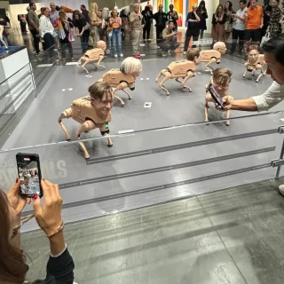 アート・バーゼル・マイアミ・ビーチで最も話題を集めたのは、ビープルが手がけたロボット犬だった。イーロン・マスクやマーク・ザッカーバーグの顔をもつ犬たちが画像を「排泄」するたびにどよめきが起き、会場は熱気に包まれた。