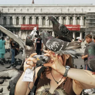 この視点は、1987〜94年のシリーズ「スモール・ワールド(Small World)」へと続く。各地の名所で群れる観光客を撮影したもので、彼らは往々にして本来の見どころを見ずに別のことに興じている。ピサの斜塔前で観光客が塔を「支えるポーズ」をする写真は特に有名だ。画面には塔が大きくそびえるが、観光客は背を向けている。