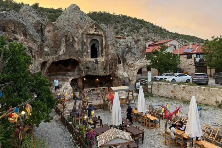 3000年前の岩窟墓を改築して作られたカフェ「タシュ・バフチェ(石の庭)」。Photo: Selim Uzun/Hürriyet