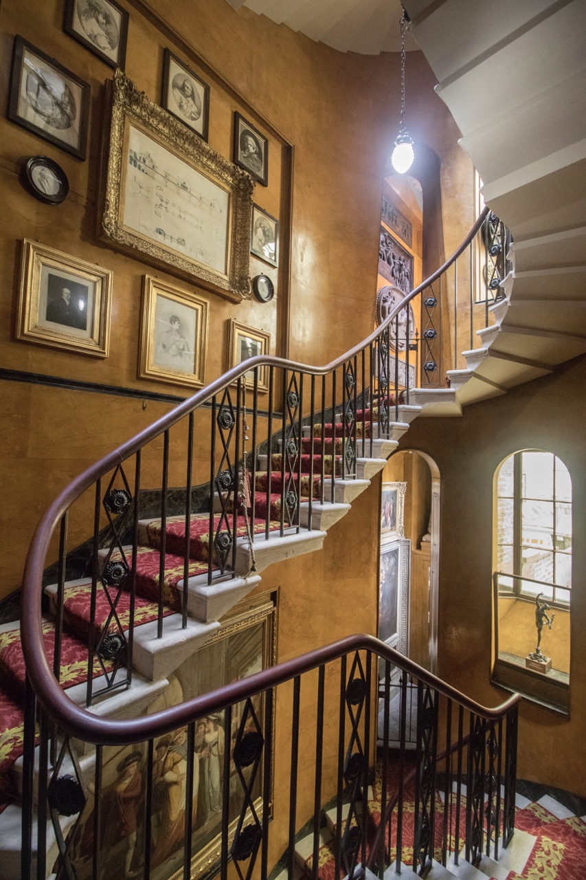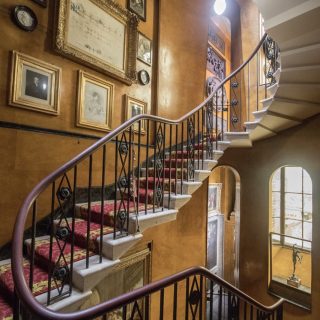 住宅であるがゆえに、入口はその存在を知らなければ気づかず通り過ぎてしまうほどさりげない。しかし、中は装飾が隅々まで施された新古典主義と呼ばれる特徴的な建築様式をとっています。