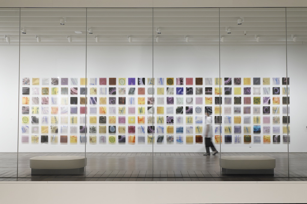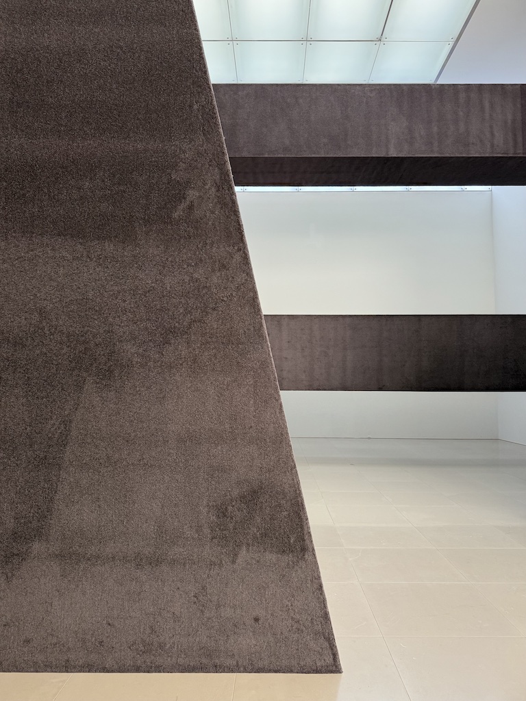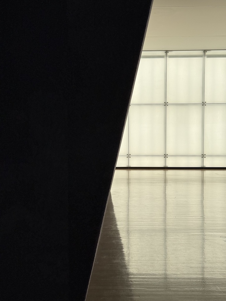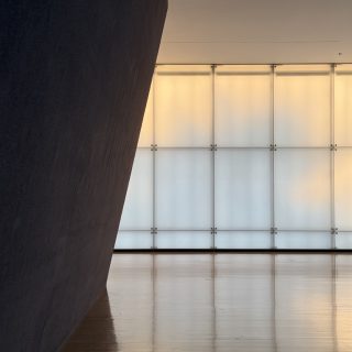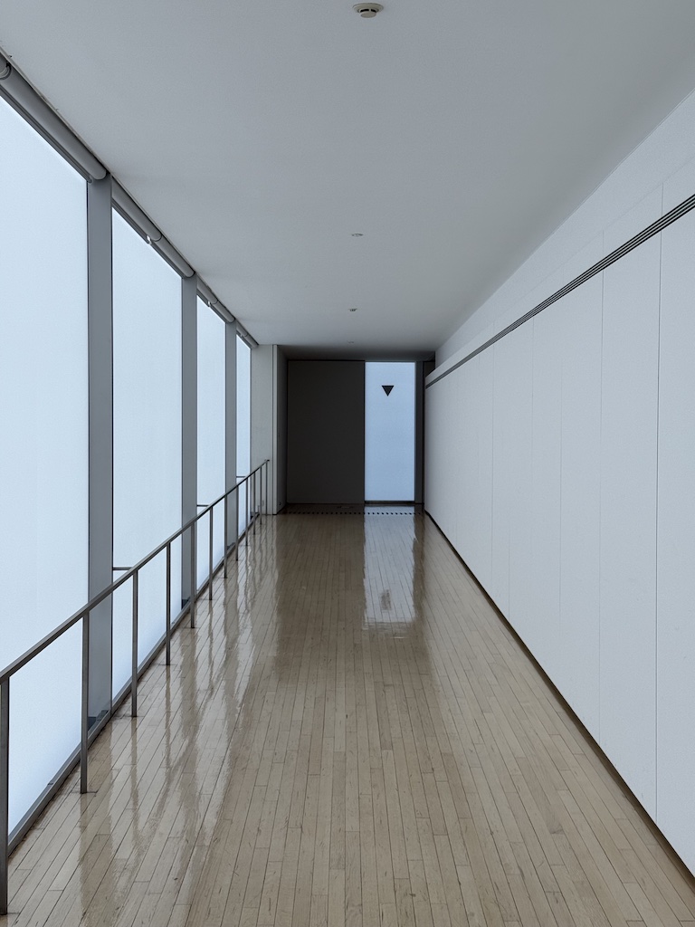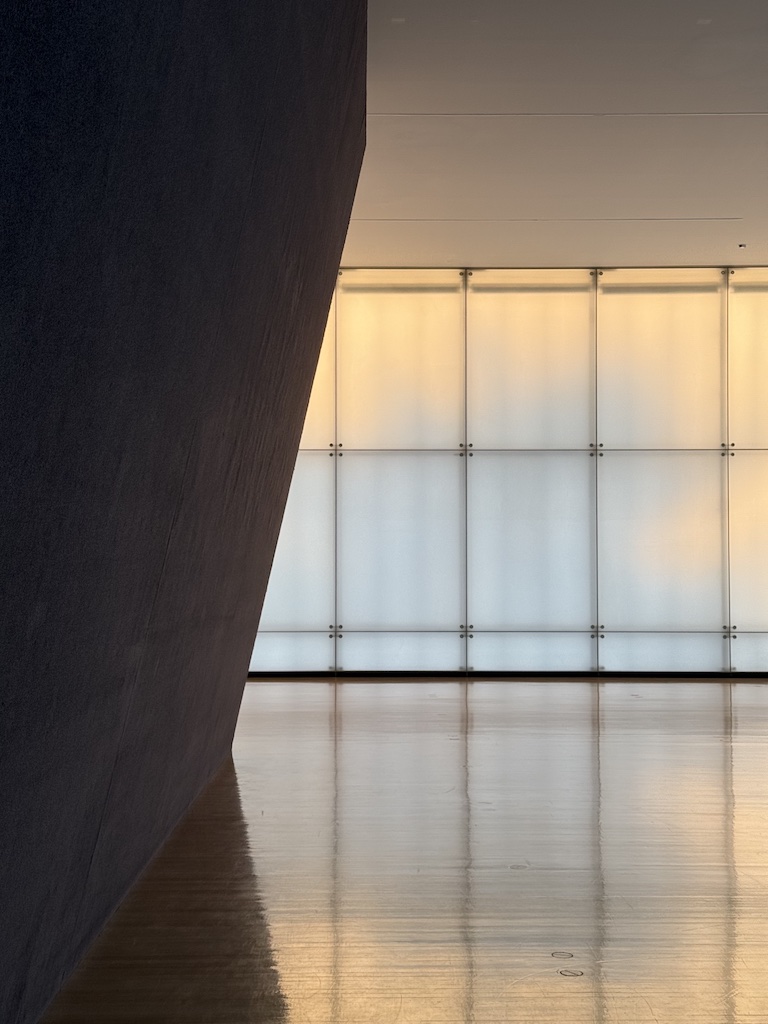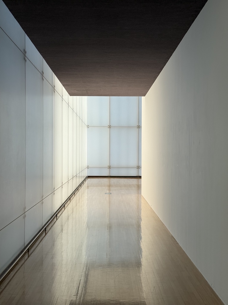 谷口吉生設計の端正な建築の壁・床・天井を貫くように、巨大なオブジェクトが設置され、乳白色のガラスから差し込む自然光が季節や時間の移ろいとともに変化する。その空間を巡る体験は、建築や空間に対するスケール感や、自身の身体感覚を変容させていくように感じられた。