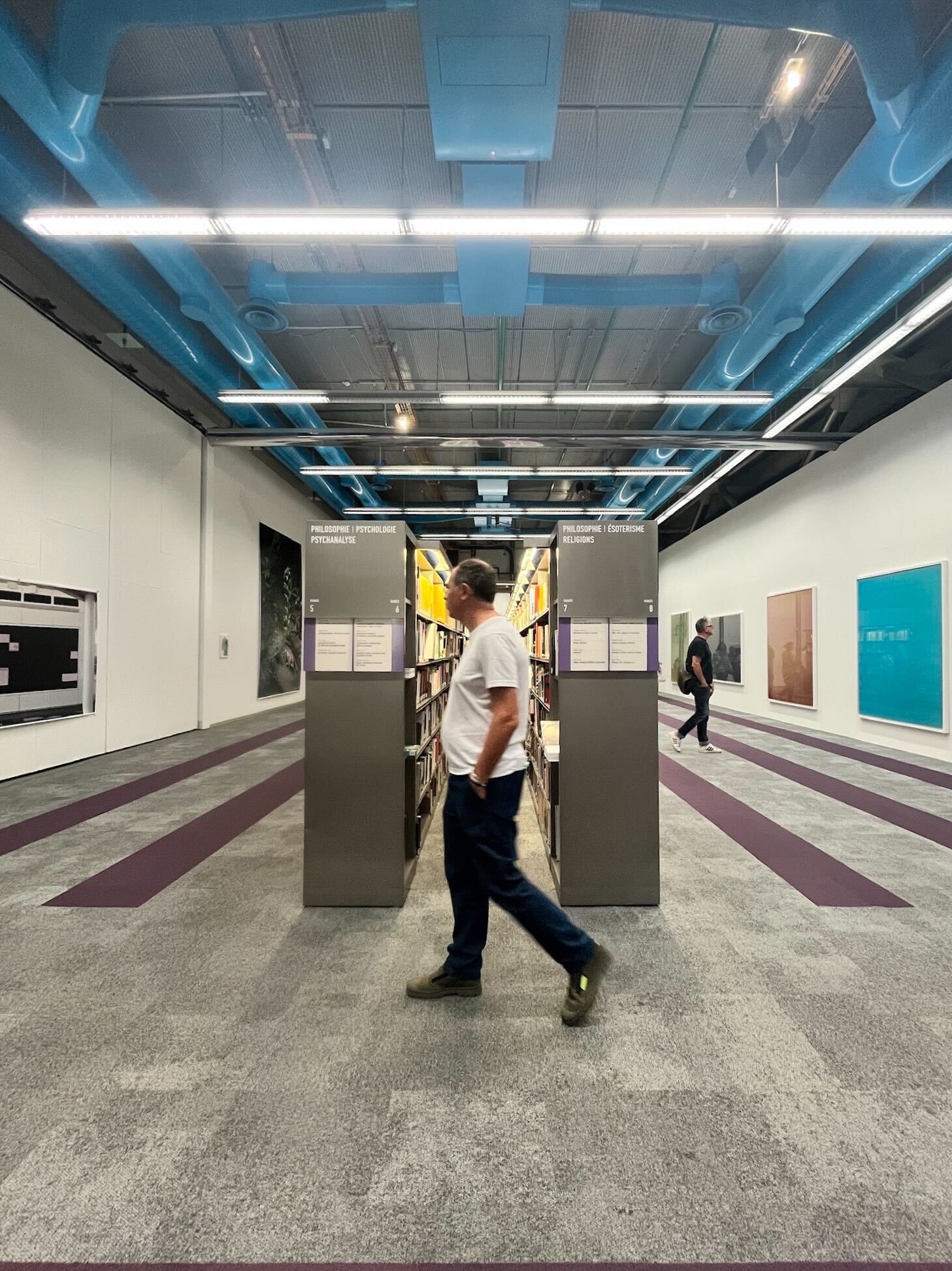 世界各地で極右的な政治潮流が強まり、公共性そのもののあり方も問われる現在、公共の場である図書館を丸ごと占拠するという行為自体は政治的だ。ただし、ティルマンスの応答はスローガン的でも断定的でもない。むしろ、曖昧さや複雑さ、ためらいを抱え込むことによって、私たちが何をどのように見ているのかを静かに問い続けていた。(Asuka Kawanabe)