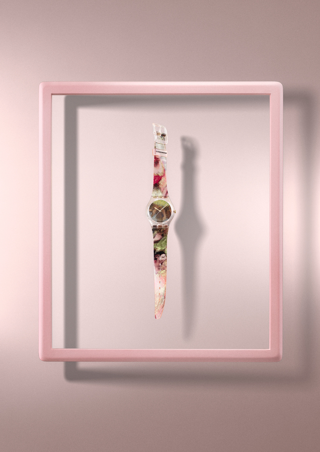 作品選定について、スウォッチのCEOであるヴィヴィアン・シュタウファーはWWDの取材に対し、「ニューヨークとヴェネチアの学芸チームとの緊密な対話を通じて選びました。それぞれの作品は、感情的な訴求力、グッゲンハイム・コレクションにおける重要性、そして腕時計という親密なフォーマットへと有意義に転換できる点を基準に選ばれています」と語っている。