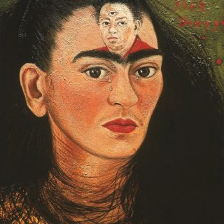 中でも、2021年にサザビーズ のオークション に出品された自画像《Diego and I/ Diego y yo(ディエゴと私)》(1949)は、特に注目を浴びている。落札額は3500万ドル(当時の為替レートで約40億円)で、その時点でのカーロの最高額を樹立した作品だ。また、1933年の《My Dress Hangs There/ Allá cuelga mi vestido(私のドレスはそこに掛かっている)》は、US版ARTnewsがニューヨークをテーマにした傑作100点の1つに選んでいる。