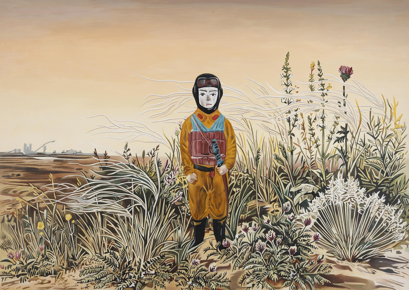 本展では、そんなヱボシが経験し、残したとされる「戦争」にまつわる絵画を展示する。ヱボシは健康上の理由で従軍経験はなく、疎開先で終戦を迎えた。展覧会のタイトル「でいかい」は、「泥の塊」と「泥の海」という二重の意味を持つ言葉で、戦争に行かなかった者が見た時代の濁流と、そこから掬い上げられた記憶を表している。会場には、ヱボシが多様な角度から「戦争の残響」を描いた作品が並んでいる。