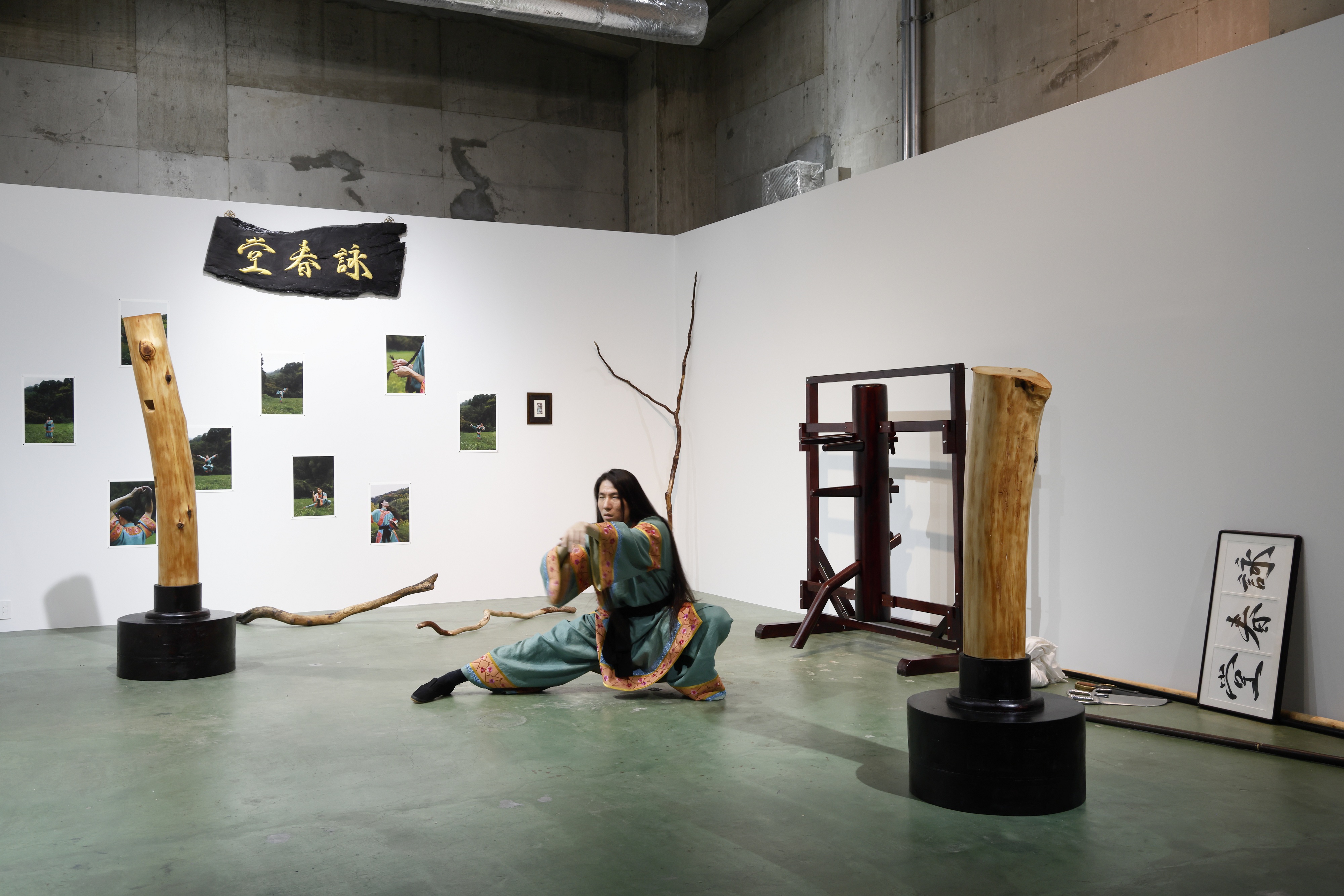 ファイナリスト展会期中、小林は毎日休むことなく、自身の展示空間で詠春拳の実践を行うという。