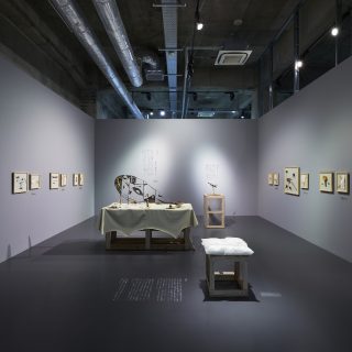 小林勇輝は、少林寺の尼僧・拳法家であった五枚師太(ンー・ムイ)によって創始され、葉問(イップ・マン)と彼の弟子によって世界的に普及された中国南部武術「詠春拳」を起点としたパフォーマンス作品に取り組んだ。今回のファイナリスト展では、その「The Wing Chun Project(詠春拳プロジェクト)」の一端が公開されている。