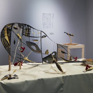 彼女は今回の作品で、かつて捕鯨船に乗っていた人々をはじめ、これまでのリサーチを通じて出会った人々から譲り受けた鯨の歯やクジラヒゲを素材に、「空想の玩具」を制作した。中には、漂着鯨から得たクジラヒゲを使用した作品もある。クジラヒゲは、かつて西洋ではコルセットに、日本ではかんざしやペーパーナイフに加工されて使われてきた。是恒は、生活様式の変化とともに日常から消失していったこうした道具に宿る記憶や文化を、再び手仕事を通じて形あるものとして現出させることで、長い歴史の中に確かに存在した鯨と人の関わりを可視化させることに挑戦している。