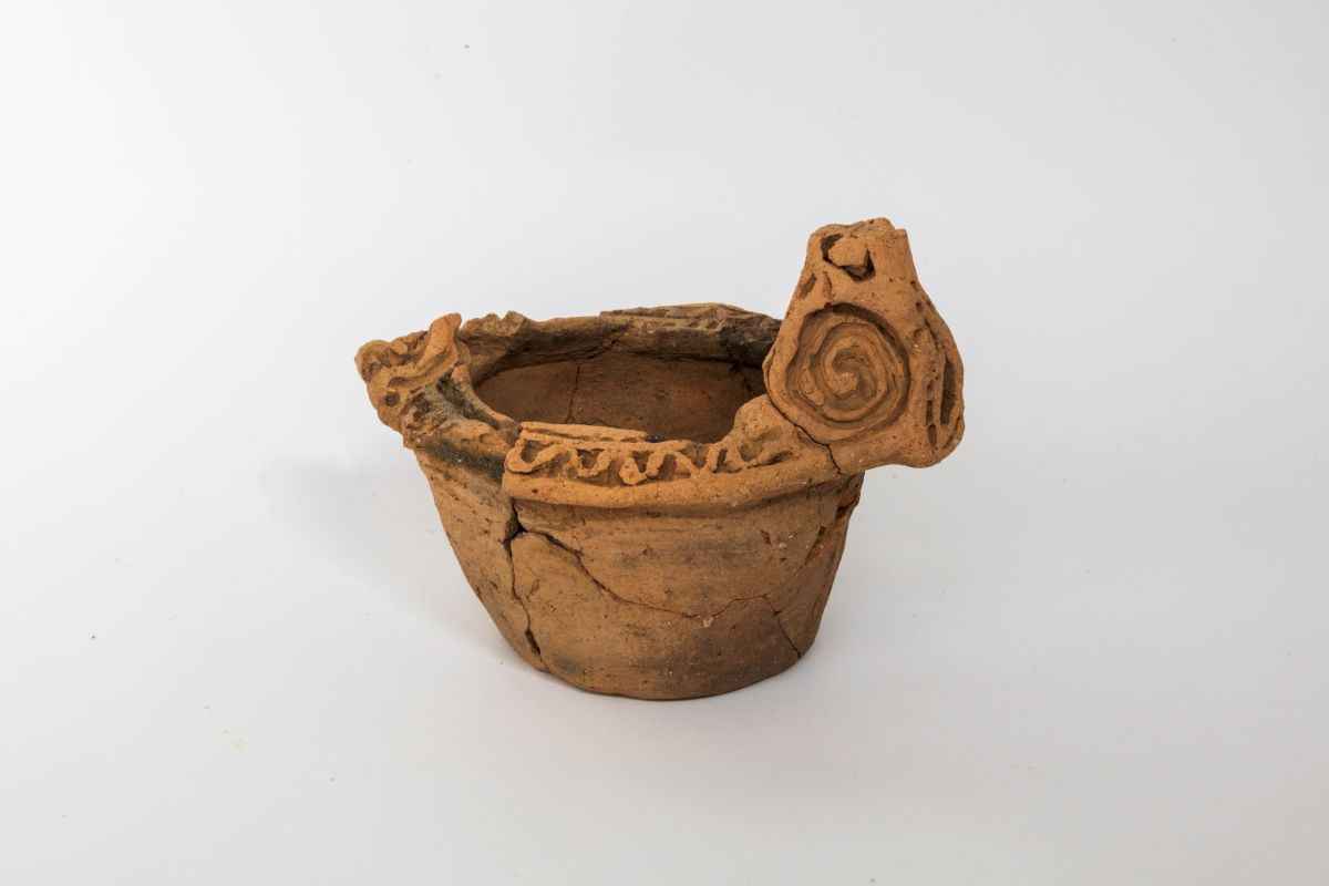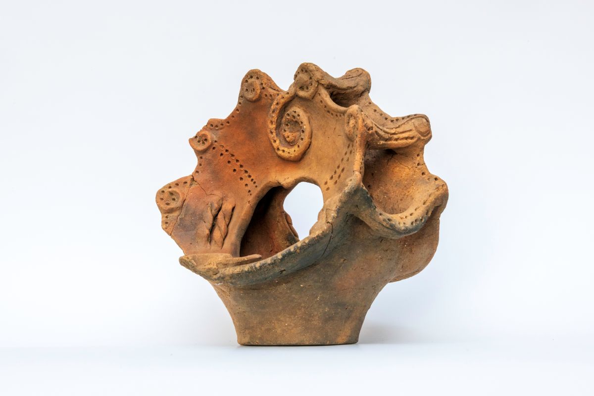 *1 アーチ形の把手や香炉の蓋のようなものが付いた鉢で、祭祀や儀礼を行う際に油を用いて火を灯したと考えられている。