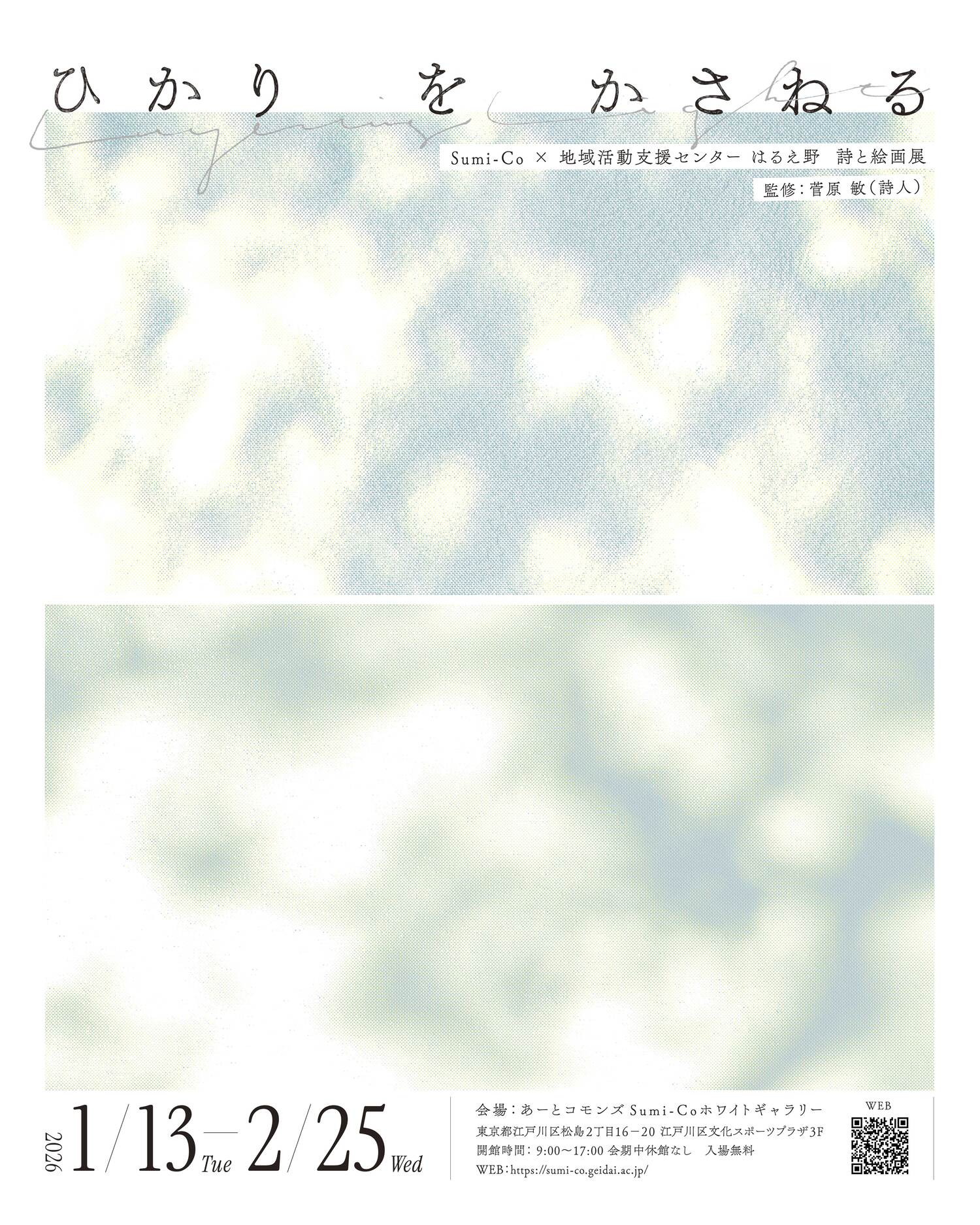 「Poetry & Painting」を連載中の詩人・菅原敏が監修を務める企画展「『ひかりをかさねる』~詩と絵画展~」が、2月25日まで、東京・江戸川区の「あーとコモンズ Sumi-Co」にて開催されている。本展は、東京藝術大学が運営するSumi-Coと、地域活動支援センター「はるえ野」による共同企画。