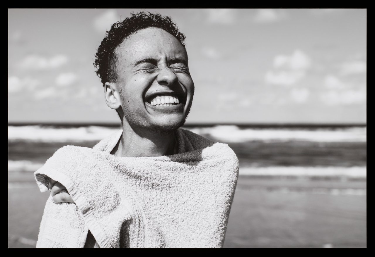 マーヴェル・ハリス(Marvel Harris)による「Inner Journey」(2014–)シリーズのセルフポートレート《First Swim After Rebirth(生まれ変わった後の初泳ぎ)》は、自閉症スペクトラムを含めた自己の受容、幸福感、性同一性といった課題と向き合ってきたハリスの性適合手術後の喜びを称える作品だ。