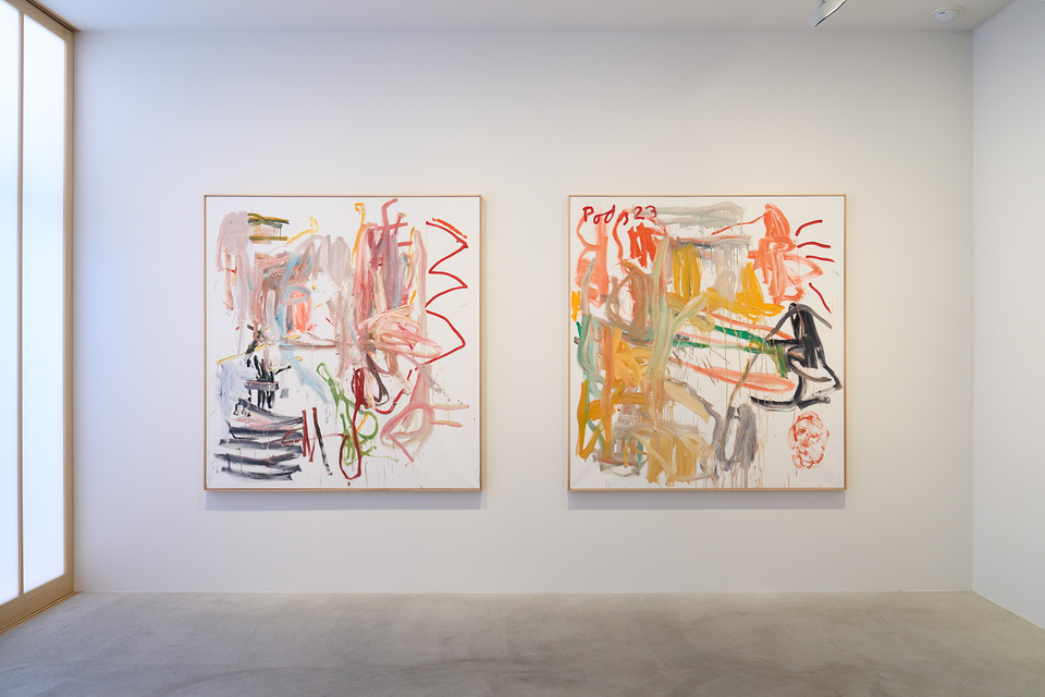 本展では、1979年から2025年までの作品15点が展示される。長いあいだ公のアートシーンから離れていたポーズだが、近作にはその孤独な探究の時間が色濃く反映されている。荒削りな筆致や触覚的な即時性を引き継ぎながら、パステル調の油彩や水彩、スプレーペイントが加わり、自由で軽やかな色彩が画面に広がる。本展より1階の展示空間に加え、地下のギャラリー・スペースも新たにオープンする。