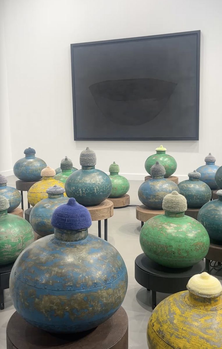 シンガポール発のギャラリー、Ames Yavuzが紹介したピナリー・サンピタック(Pinaree Sanpitak)も印象深い。1990年代初頭から一貫して、女性の身体、母性、宗教(とりわけ仏教)、ケア、スピリチュアリティを主題に制作を続けてきた、タイ現代美術を代表するアーティストの一人だ。ここではVessel(器)をテーマとした作品が集められており、多数の壺がモゾモゾと動く《Balancing Act 24》は、ユーモラスであると同時に、彼女が長年取り組んできた主題が凝縮されたかたちで立ち現れていた。