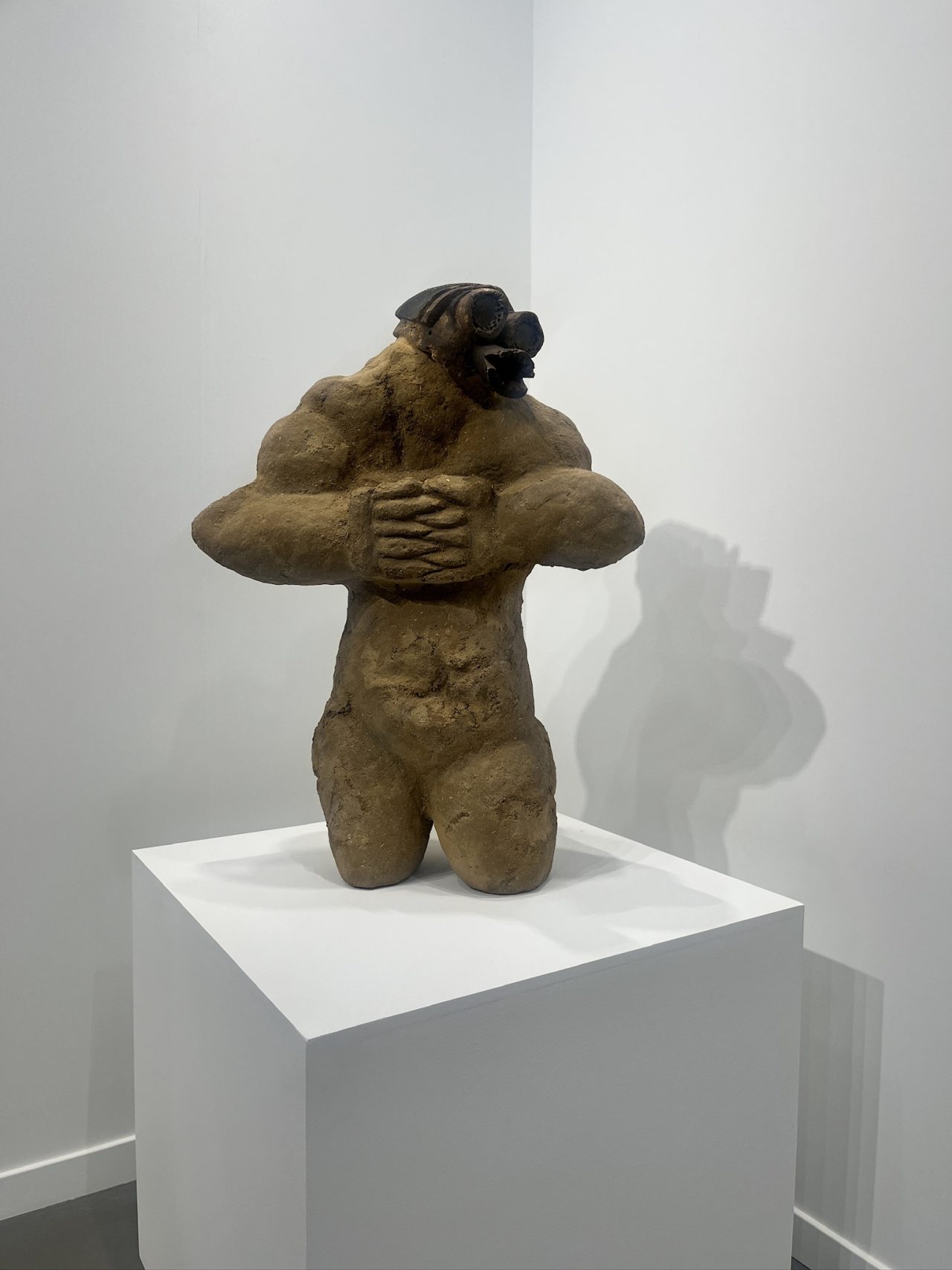たとえば、アルミン・レッシュによるアリ・シェリー(Ali Cherri)の個展だ。レバノン出身のシェリーは、戦争、考古学、博物館、身体、暴力の記憶などを扱いながら、「歴史はどのように保存され、誰によって語られるのか」という問いを、映像と彫刻を中心に掘り下げてきた作家である。考古学的な遺物を彷彿とさせる作品群の中でも、《Vakono》は、考古学的に価値がないと判断された遺物を組み合わせた人型彫刻で、他者の身体や歴史がいかに分類され、沈黙させられてきたかを暴き出す、シェリー作品の批評性が端的に表れた一作だった。