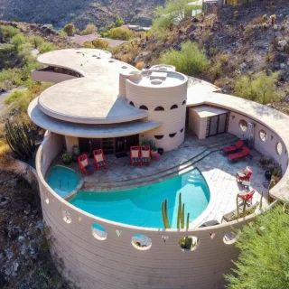 アリゾナ州フェニックスの丘の上に建つこの住宅は、ライトが死去した1959年に設計されたものだ。建設は彼の死後、元弟子であるタリアセン・アソシエイテッド・アーキテクツのジョン・ラッテンベリーが引き継ぎ、1967年に完成した。