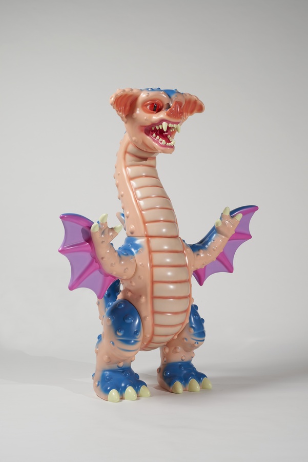 展示はパラッツォの建築的特性を生かして構成される。入口にあたるグランドフロアでは、ソフビ玩具やSF的イメージ、アメリカンコミックスといった視覚文化を起点に、木彫彫刻と量産フィギュアを横断する独自の彫刻表現を展開してきたコムロタカヒロの作品を紹介。高低差のある足場の上に、コムロの世界観が立体的に展開される。