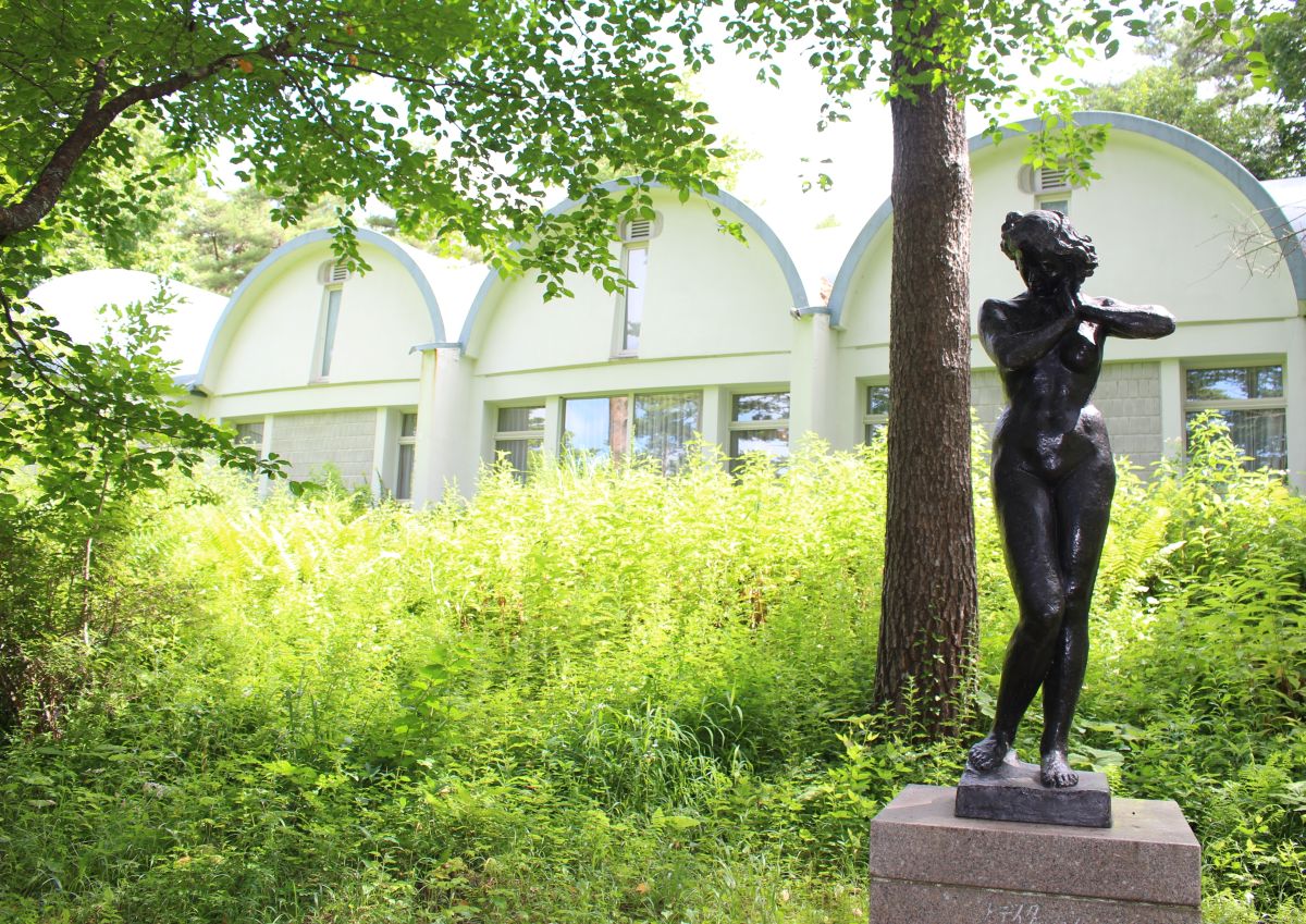 八ヶ岳美術館の常設展では、清水多嘉示の彫刻や絵画を中心に、原村出身の書家・津金隺仙の作品や地元の文化財である縄文土器などを展示。また、近代から現代まで幅広いアーティストを取り上げた企画展を、年間を通して開催している。さらに、美術館の周囲に広がるカラマツ林の中には散策路が設けられ、高原の自然を体感することもできる。
