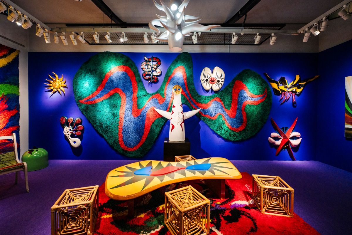 旧館の1階にはサロンとアトリエがあり、応接・打ち合わせスペースだったサロンには太郎がデザインした家具や彫刻が並ぶ。また、大きな窓の向こうに見える庭にも、生い茂ったバショウやシダ類などの間に彫刻が設置されている。アトリエは生前そのままの状態で保存されており、机の上の道具や床に飛び散った絵の具には今も使われているような臨場感がある。新館には2つの展示室があり、岡本太郎の事績を振り返る企画展や、注目の現代作家との企画展が随時行われている。