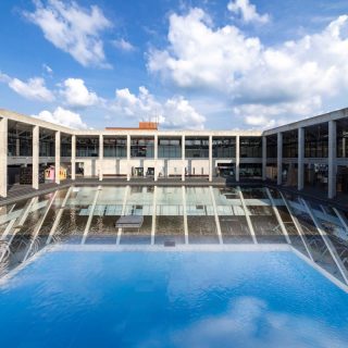 「大地の芸術祭 越後妻有アートトリエンナーレ」の拠点施設である越後妻有里山現代美術館 MonETは、2003年に越後妻有交流館・キナーレとして誕生。建物の一部が2012年に越後妻有里山現代美術館[キナーレ]に生まれ変わったのち、2021年の改修と常設作品の大幅な入れ替えを経て現在の姿になった。原広司+アトリエ・ファイ建築研究所の設計による正方形の建物は、中庭の大きな池を列柱と回廊で取り囲む形状で、外界から切り離された別世界のように感じさせる。また、打放しのコンクリートとガラスを用いつつ、池という自然を取り込んだ空間は、静かなたたずまいで見る者の心を穏やかにしてくれる。