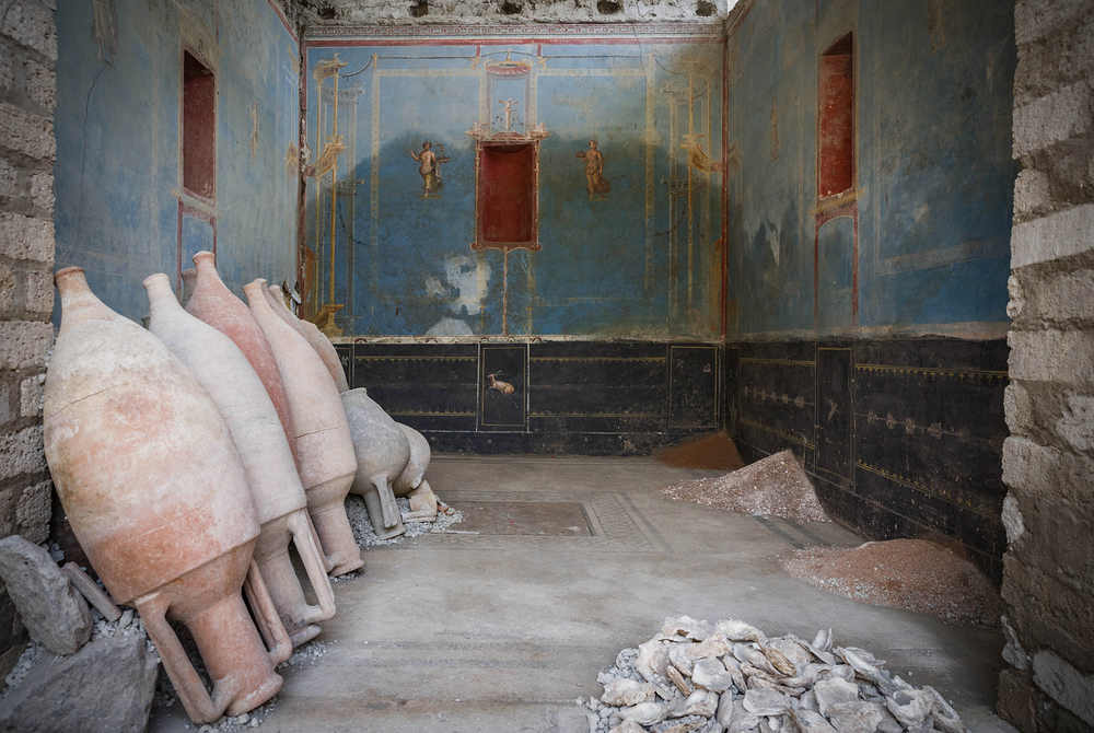 2024年にポンペイで発見された「青の間」の最新調査により、壁を覆う顔料の使用量と価値が明らかになった。その費用はローマ兵の年収の最大約9割に相当するとされ、当時の富裕層による豪奢な装飾の実態が浮かび上がった。