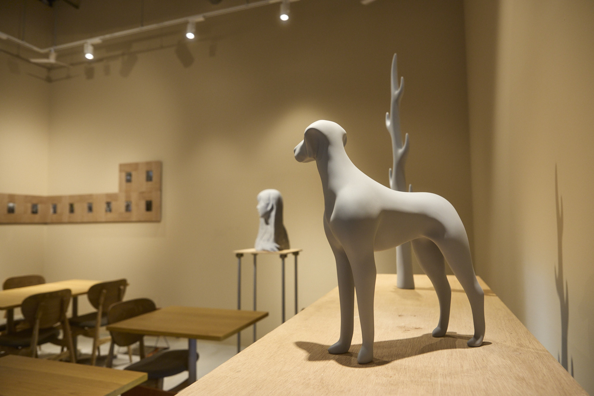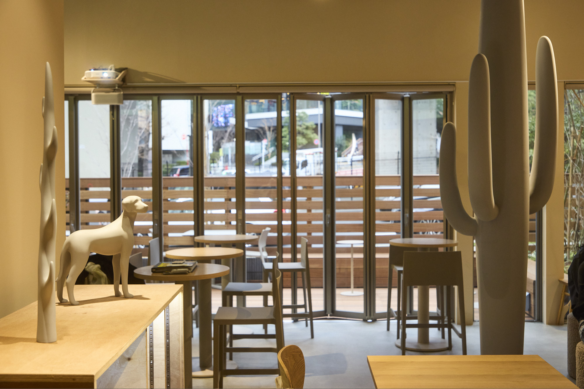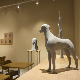 MINA店内に足を踏み入れると、あらゆる意味でニュートラルな空間が広がる。特筆したくなる装飾性や意匠性を意図的に排したと思われる、あくまで耳障りのよい場所だ。渋谷3丁目に矛盾しない、というと皮肉すぎだろうか。店内には、「ミュージアム」という名前を冠しているだけあり、確かにアート作品がそこかしこに展示されており、購入も可能だが、恭しく防護ケースに守られているわけでもない。ここでは、アートは提示されるものというより「気づかれるもの」として存在する。テーブルに置かれた『コーヒーテーブルブック』と呼ばれる展覧会図録は、喫茶メニューと一体化したZINEのような軽やかさだ(L PACK.らしい皮肉が効いている)。