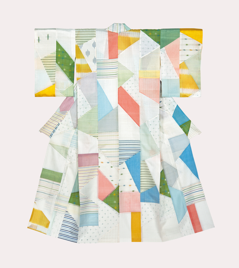 同館では3回目の個展となる本展は、3章構成で表現の軌跡を辿る。第1章「源氏物語の世界」では、志村が70代半ばから手がけてきた源氏物語をテーマにした連作を紹介。第2章「沖宮の世界」では、作家・石牟礼道子が遺した新作能「沖宮」で使われる装束6領全てが並ぶ(展示替えあり)。第3章「志村ふくみの世界」では、長年の制作で生まれた残り布や端切れを使って生み出したコラージュ作品を展示。高村光太郎の詩に感動して筆をとり、小裂で飾った《五月のウナ電》や着物の雛形、裂帖などを通じて、その豊かな創造の世界を探る。