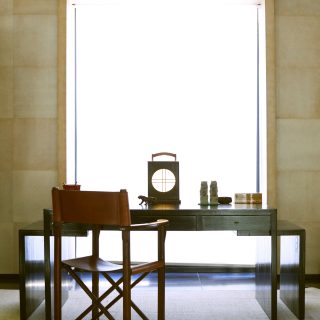 さらに本展では、ミラノ、パリ、サンモリッツなどに点在するアルマーニの邸宅を記録した写真群も展示される。これらの空間に共通するのは、静謐さと緊張感。思想としてのエレガンスが、家具配置や光の入り方、素材の選択を通じて、いかに具体的な生活空間へと変換されているのかを視覚的に辿る構成となっている。