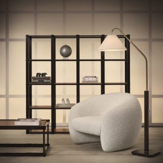 アルマーニの思想は、「エレガンスとは人目を引くことではなく、記憶に残ることである」という言葉に象徴される。こうした抑制と均衡を重んじる態度は、衣服のみならず家具や建築的空間へと拡張され、本展においては光と影、構造と余白の関係性として提示される。