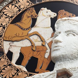 1797年に発見されたこの大理石像は、紀元前5世紀のギリシャ彫刻をローマ時代に模刻したもので、アテネの守護女神の賢さと力強さが表現されている。時計では、エーゲ海のパロス島産の純白の大理石を使用し、女神の均整の取れたプロポーションと静謐な威厳を感じさせる仕上がりとなっている。